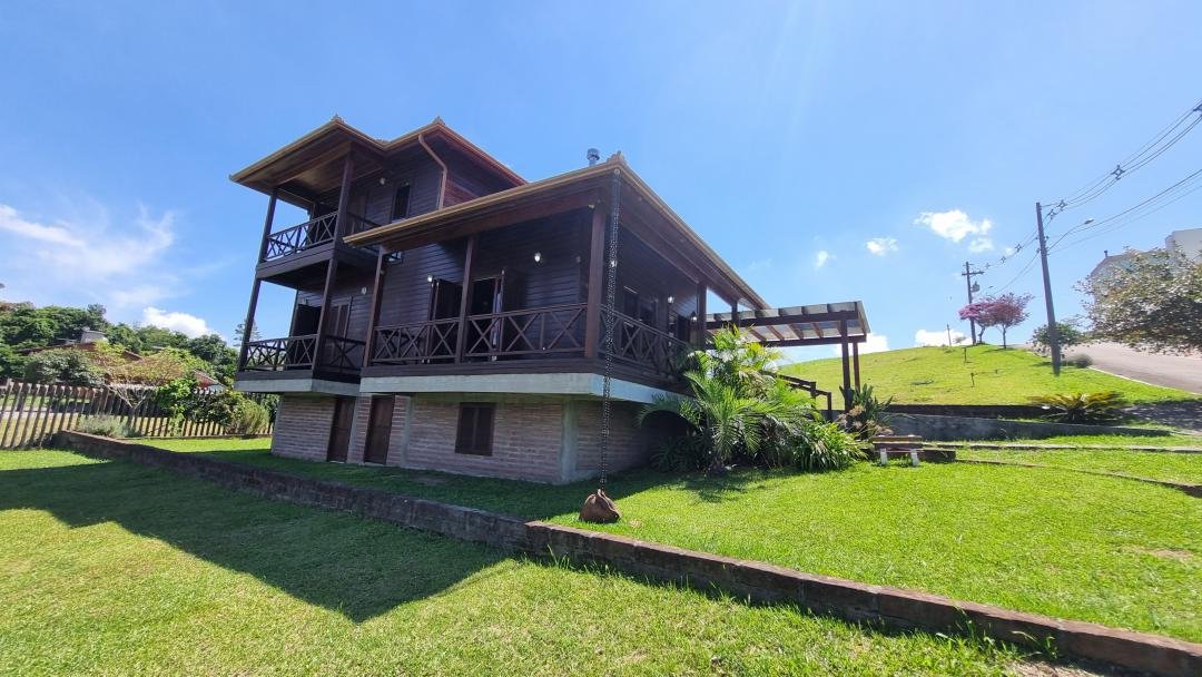 Sobrado no Condomínio Blumen Haus, bairro Vila Olinda, na cidade de Nova Petrópolis/RS. - Terreno com 412,57m²; - 175,93m² construídos; - 2 dormitórios, sendo 1 suíte com banheira; - Banheiro social; - Cozinha; - Sala de estar/jantar; - Lareira; - Lavabo; - Lavanderia; - Varanda na frente e lateral; - Porão; - Madeira nobre - Ipê - Vaga para 2 carros; - Condominio com segurança 24h, portaria, salão de festas, horta, playground, trilhas, pomar; - Localizado próximo aos principais pontos turísticos e serviços da cidade. Para mais informações, entre em contato com um de nossos consultores.
